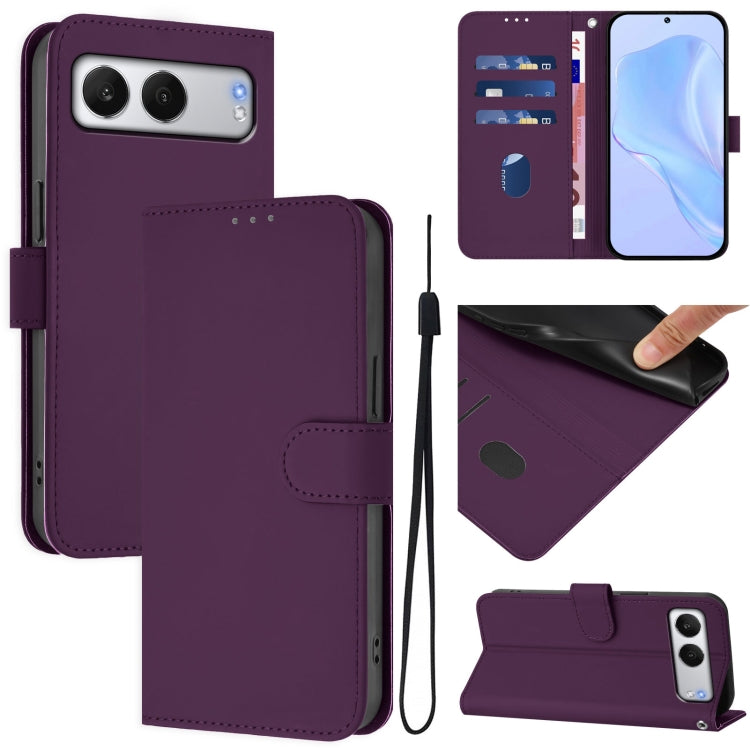 Funda de Piel para OnePlus Nord 4 5G con Textura y Cordón (Violeta)