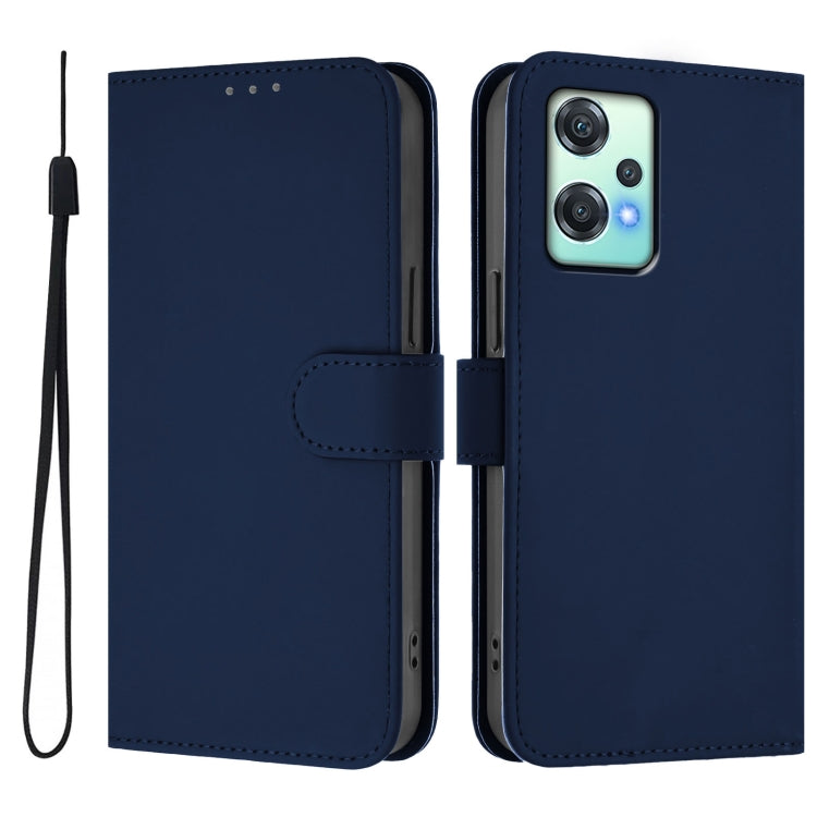 Funda de Cuero Textura Piel para OnePlus Nord Ce 5G con Cordón (Azul Lago)