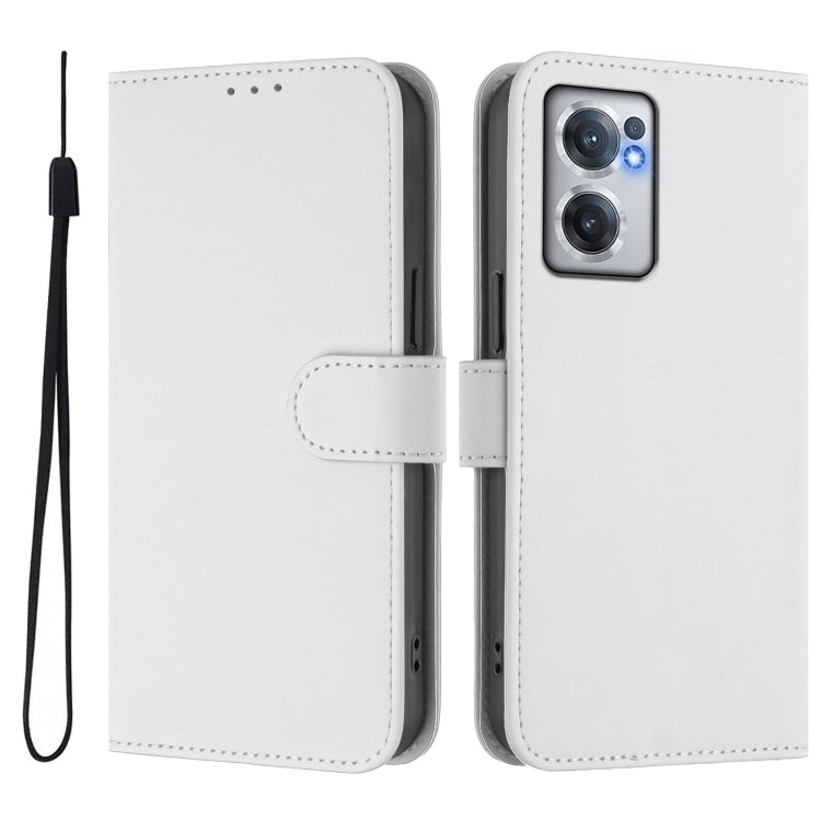 Funda de Cuero Textura Piel para OnePlus Nord 4 5G con Cordón (Blanco)