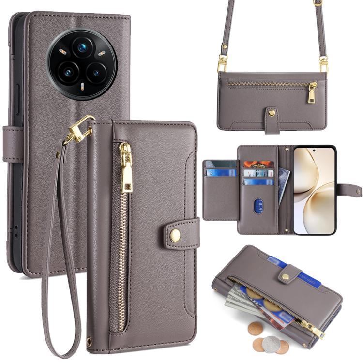 Funda de Cuero con Cremallera y Textura de Oveja para Realme 14 Pro 5G Global (Gris)