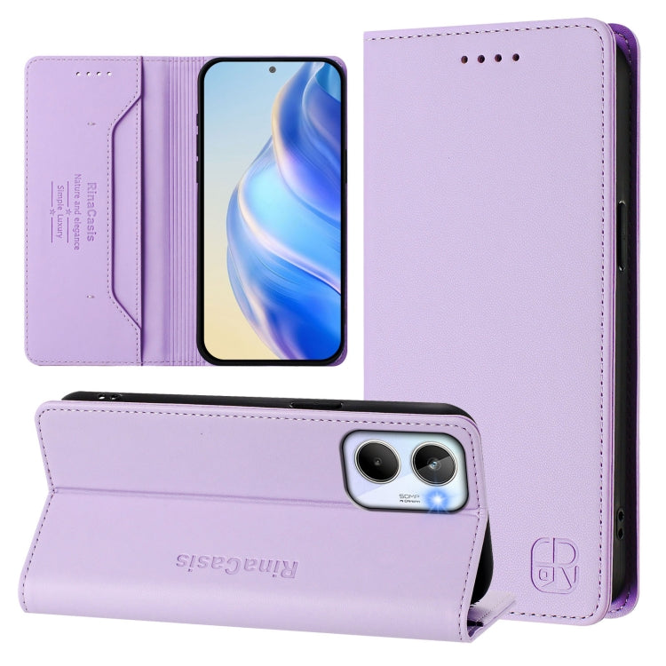 Funda de Cuero Rfid con Succión Magnética y Doble Pliegue para Realme Narzo 60 Pro Rc01 (Morado Claro)