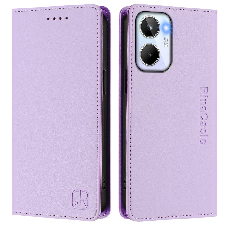 Funda de Cuero con Doble Pliegue y Succión Magnética Rfid para Realme 10 4G Global Rc01 (Morado Claro)