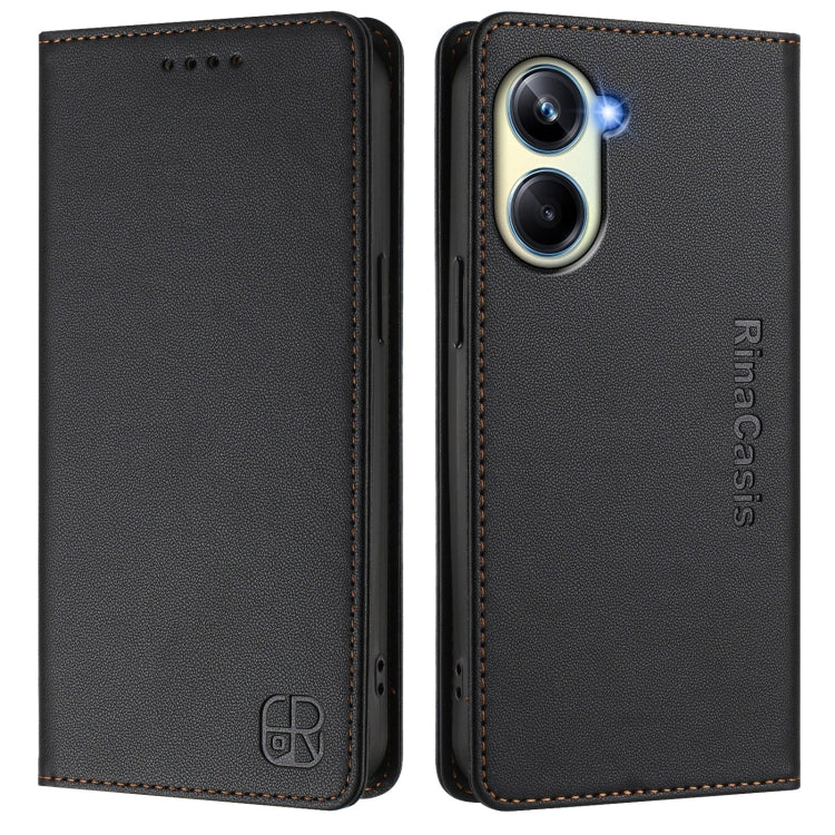 Funda de Cuero con Doble Pliegue y Succión Magnética para Teléfono Realme 10 Pro 5G Rc01 (Negro)
