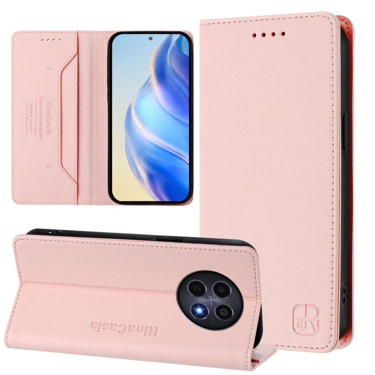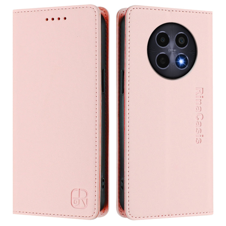 Funda de Cuero con Doble Pliegue y Succión Magnética para Realme 12 5G Global Rc01 (Rosa)
