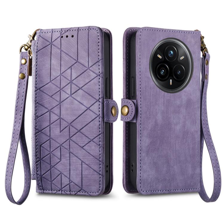 Funda de Cuero con Hebilla Lateral y Cremallera Geométrica para Realme 14 Pro+ (Morado)