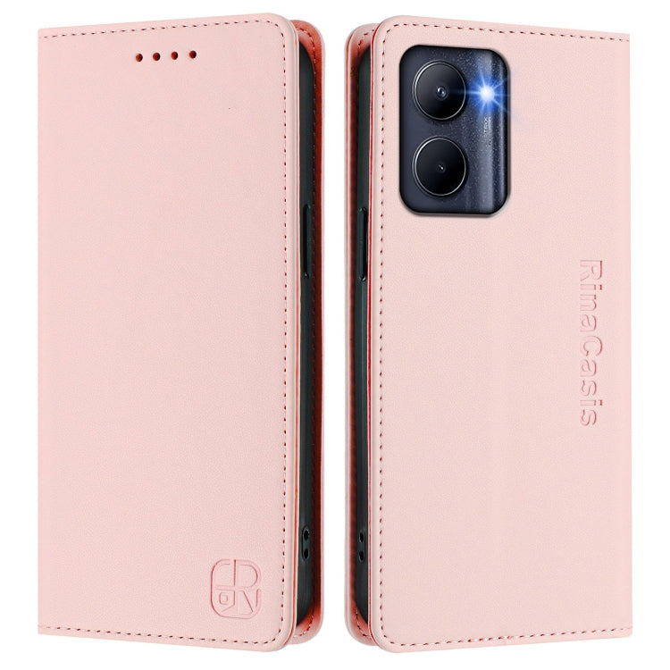 Funda de Cuero con Doble Pliegue y Succión Magnética Rfid para Realme C21Y Rc01 (Rosa)