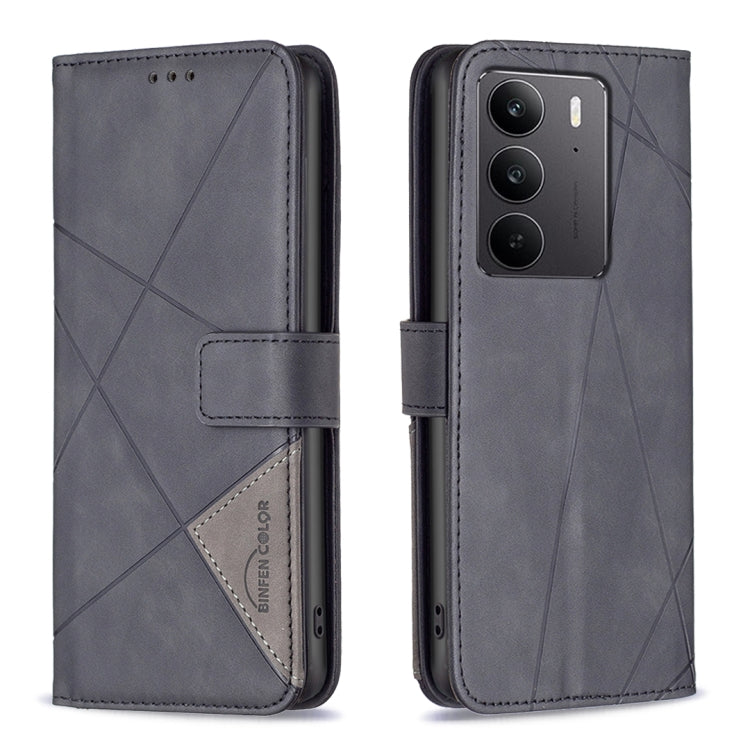 Funda de Cuero con Textura de Rombos y Hebilla Magnética para Realme C75 4G (Negro)