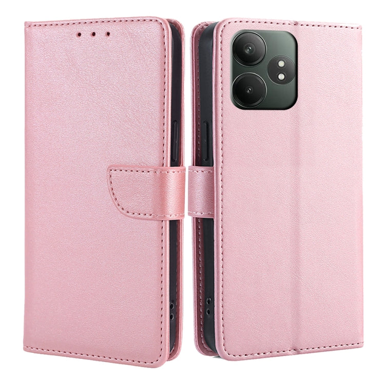 Funda de Cuero con Tapa y Hebilla con Textura de Piel de Becerro para Realme 13 Pro 5G (Oro Rosa)