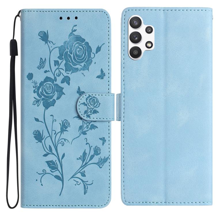 Funda de piel con estampado floral en relieve para Samsung Galaxy A32 (azul cielo)