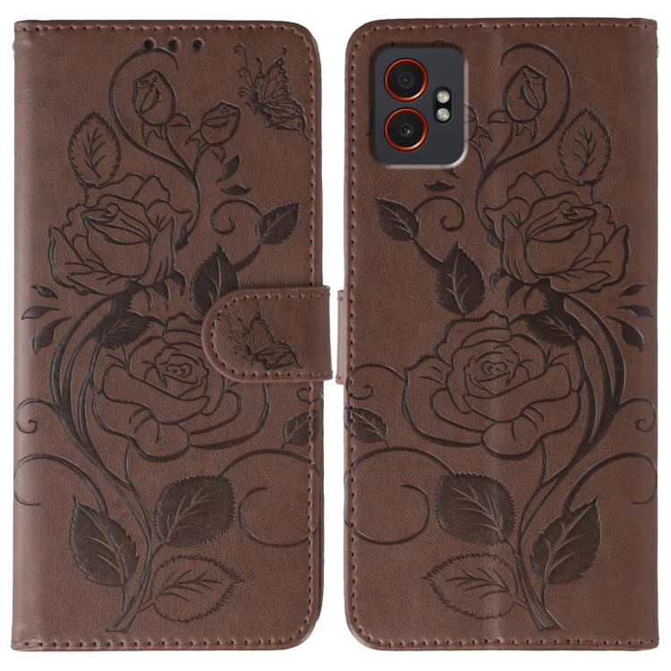 Funda de cuero con relieve de mariposa rosa para Samsung Galaxy XCover7 Pro (marrĂłn)