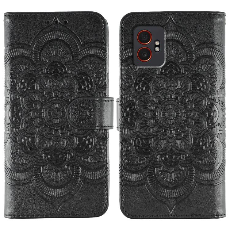 Funda de cuero con estampado de mandala y sol para Samsung Galaxy XCover7 Pro (negra)