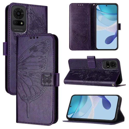 Funda de Cuero para TCL 30T T603Dl con Diseño de Mariposa en Relieve (Morado Oscuro)