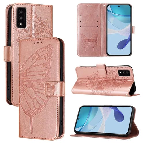 Funda de Cuero para TCL 30Z T602Dl con Diseño de Mariposa en Relieve (Oro Rosa)