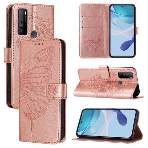 Funda de Cuero para TCL 30T T603Dl con Diseño de Mariposa En Relieve (Oro Rosa)