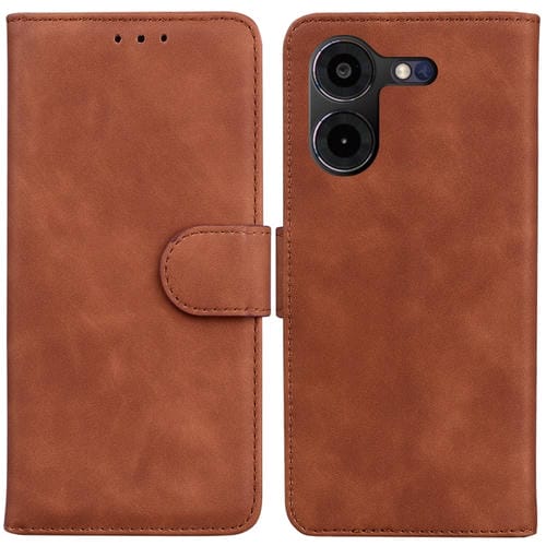 Funda de Cuero con Tapa para Tecno Pova 5 Pro Skin Feel Pure Color (MarrĂłn)