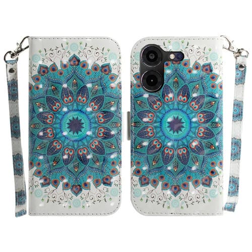 Funda de Cuero para Tecno Pova 5 Pro con Tapa Horizontal y Diseño 3D (Corona de Pavo Real)