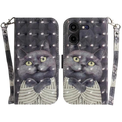 Funda de Cuero para Tecno Pova 5 Pro con Tapa Horizontal y Diseño 3D (Lindo Gato)