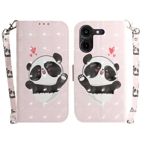 Funda de Cuero para Tecno Pova 5 Pro con Tapa Horizontal 3D (CorazĂłn Panda)