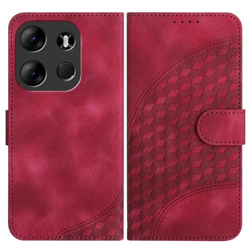 Funda de Cuero para Tecno Spark 20 Yx0060 con Relieve Cabeza de Elefante y Cordón (Rojo Rosa)