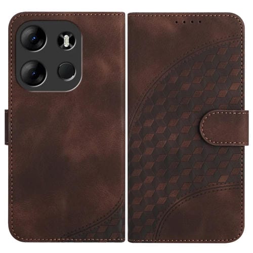Funda de Cuero para Tecno Spark Go 2023 Yx0060 con Relieve y Cabeza de Elefante con Cordón (Café)