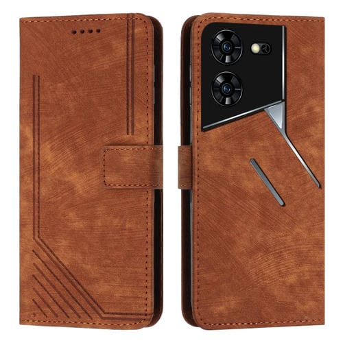 Funda de Cuero para Tecno Pova 5 Pro Skin Feel con Patrón de Rayas y Cordón Largo (Marrón)
