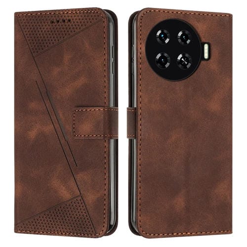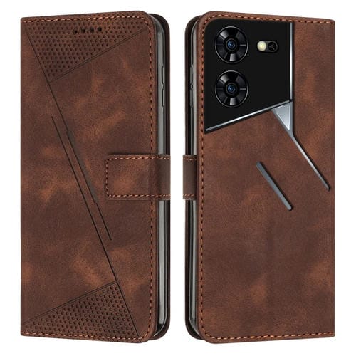 Funda de Cuero para Tecno Spark 20 Pro+ Dream Triangle con Cordón Largo (Marrón)