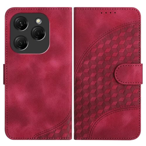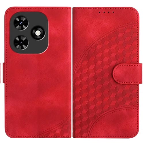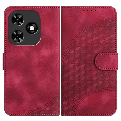 Funda de Cuero para Tecno Spark 20 Yx0060 con Relieve y Cabeza de Elefante con Cordón (Rojo)