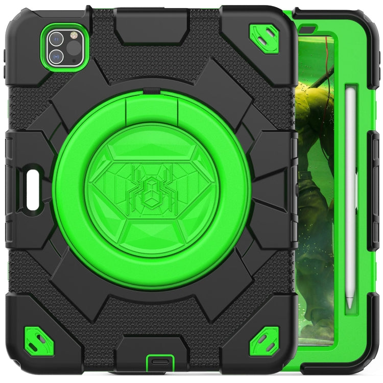 Funda Tablet Para iPad Pro 11 2022/2021/2020 Spider Rotation Handle Silicone Hybrid PC (Negro Verde)