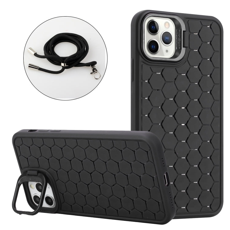 Funda para teléfono iPhone 11 Pro Max Honeycomb Radiating Holder TPU con cordón (Negro)