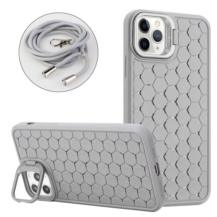 Funda para Teléfono iPhone 11 Pro Max Honeycomb Radiating Holder TPU con Cordón (Gris)