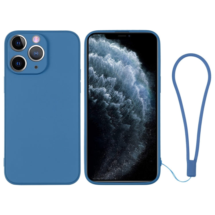 Funda de Silicona para iPhone 11 Pro Max con Correa para la Muñeca (Azul)