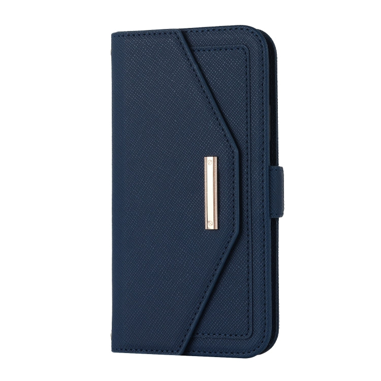 Funda de Cuero para Teléfono iPhone 11 Pro Max Cross Texture Lanyard (Azul)