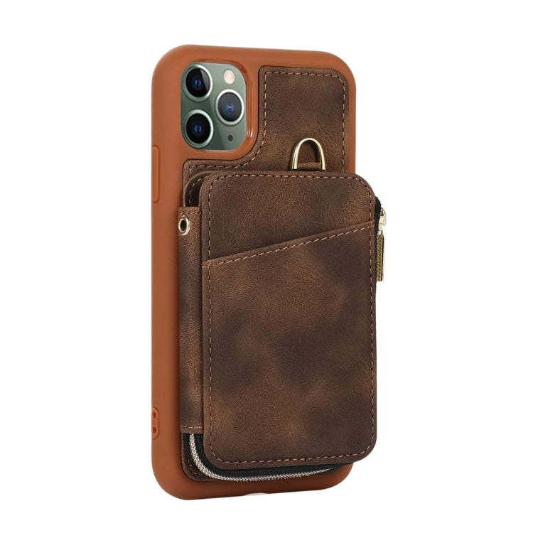 Funda para Teléfono iPhone 11 Pro Max Zipper Card Bag Contraportada (Marrón)