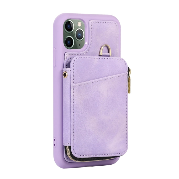 Funda para Teléfono iPhone 11 Pro Max Zipper Card Bag Contraportada (Púrpura)