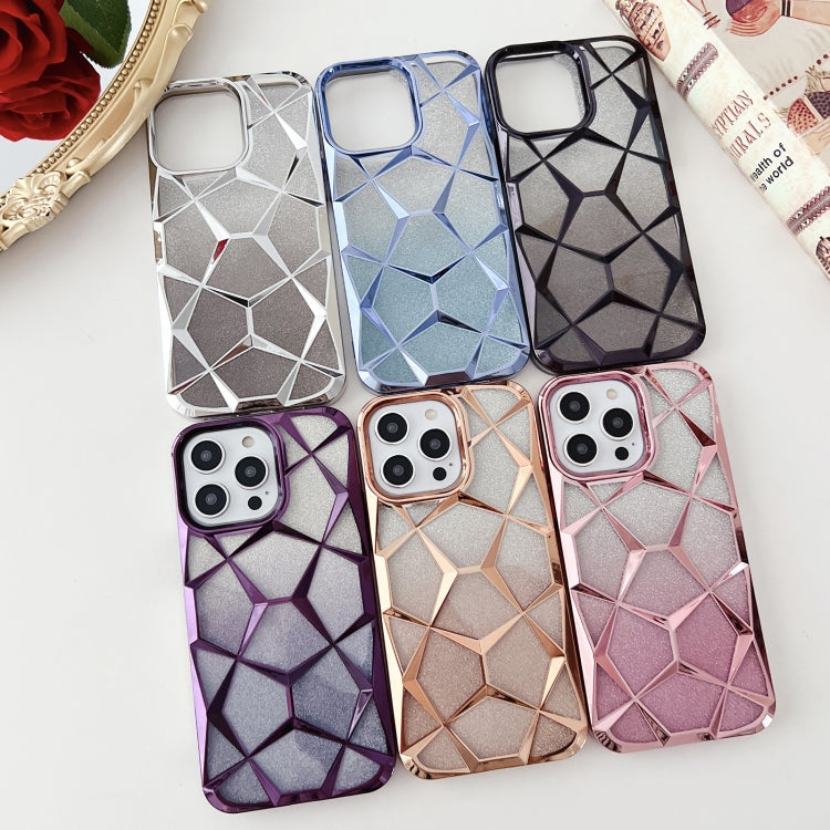 For iPhone 11 Pro Max Gradient Glitter Water Cube Electroplating TPU Phone Case (Rose Gold)