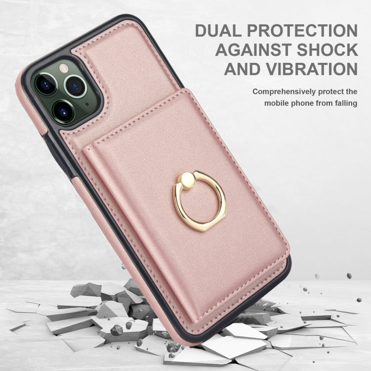 Estuche para Teléfono iPhone 11 Pro Rfid Tarjeta Antirrobo con Soporte para Anillo (Oro Rosa)