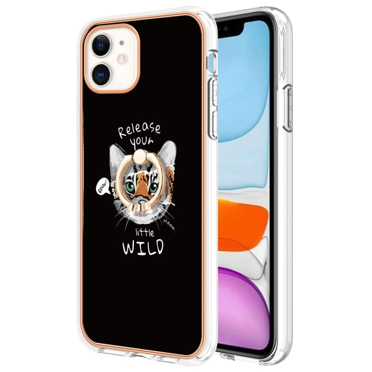 Funda para iPhone 11 Galvanoplastia IMD de Doble Cara con Soporte para Anillo (Estampado de Leopardo)