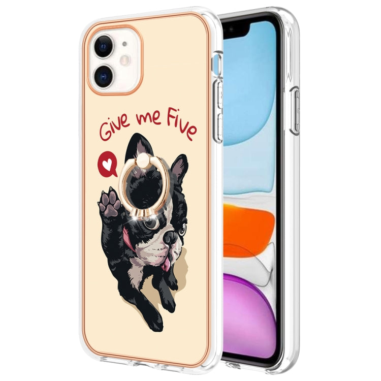 Funda para iPhone 11 Lucky Dog Galvanoplastia IMD Doble Cara con Soporte para Anillo