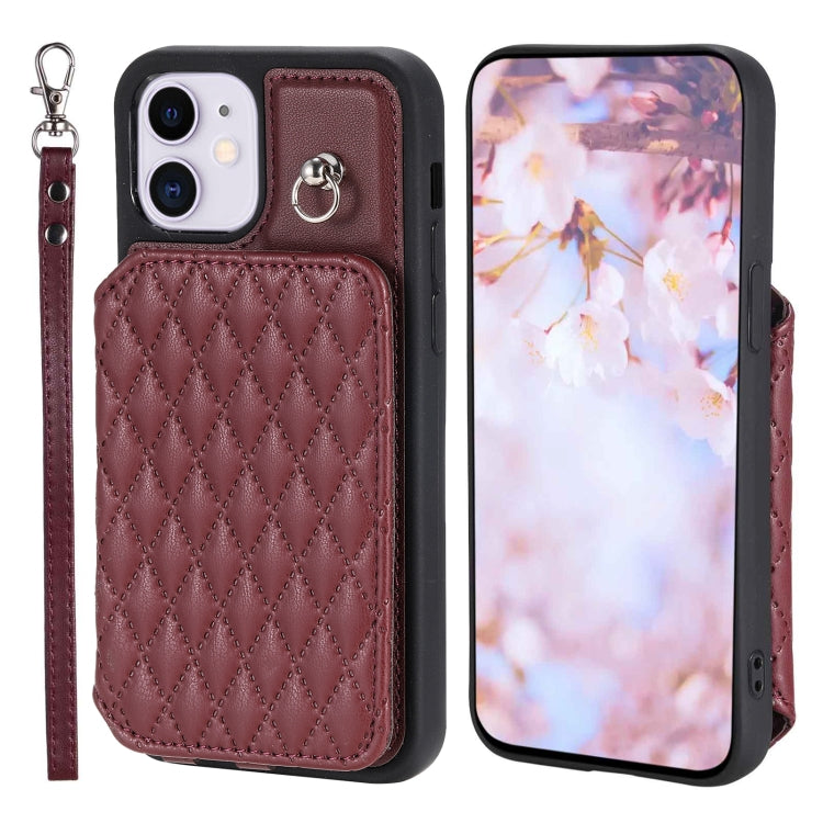 Funda para Teléfono iPhone 11 Grid Texture Card Bag con Cordón (Rojo)