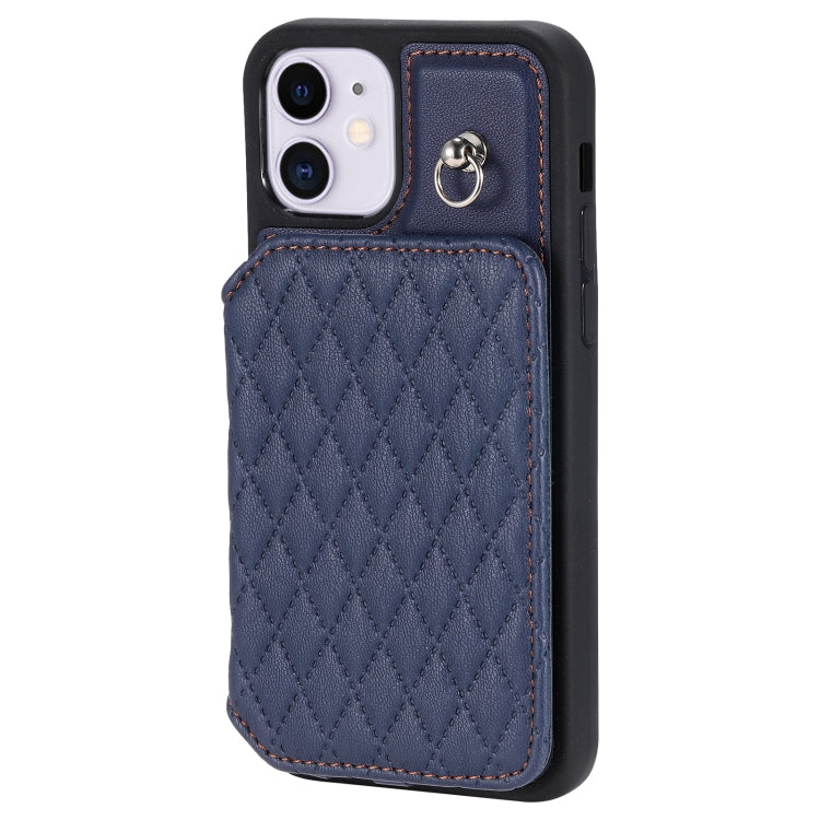 Funda para Teléfono iPhone 11 con Bolsa para Tarjetas Textura de Rejilla y Cordón (Azul)