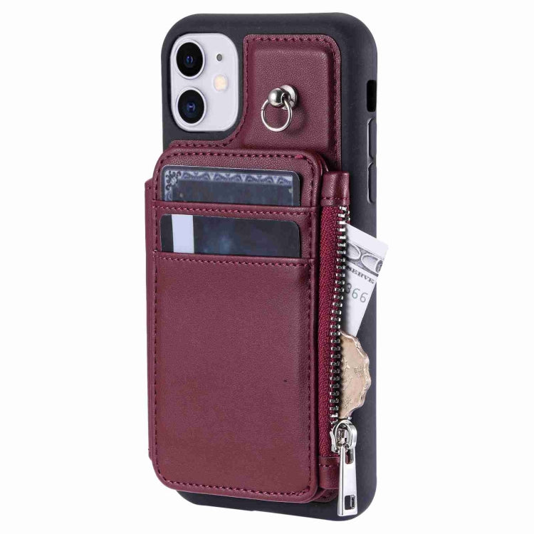Estuche para Teléfono iPhone 11 con Rfid Ranuras para Tarjetas y Cremallera (Rojo Vino)