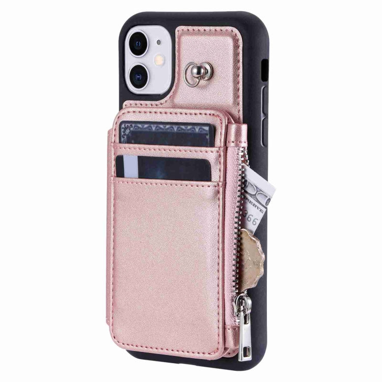 Estuche para teléfono iPhone 11 con RFID ranuras para tarjetas y cremallera (Oro Rosa)