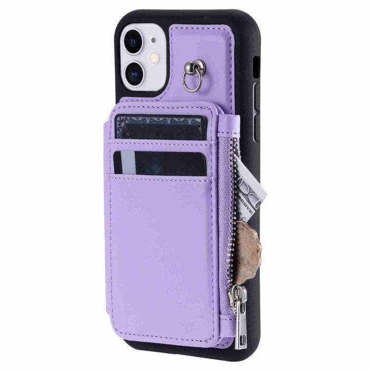 Estuche para Teléfono iPhone 11 Rfid con Ranuras para Tarjetas con Cremallera (Púrpura)