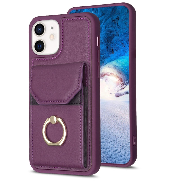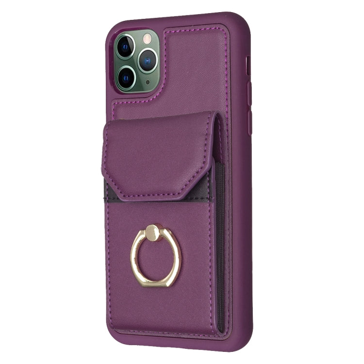 Funda para Teléfono Bf29 para iPhone 11 con Soporte para Anillo y Bolsa para Tarjeta (Negro)