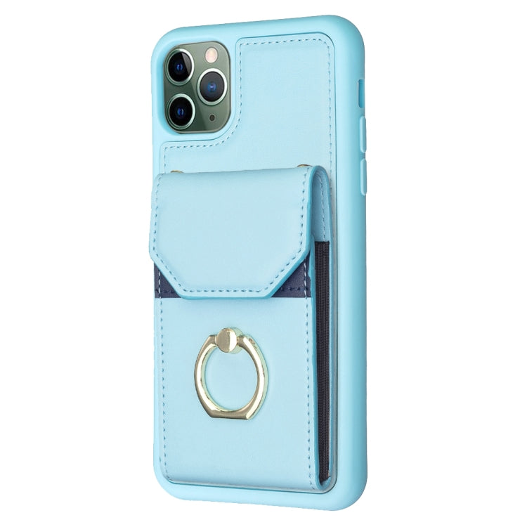 Funda para teléfono Bf29 iPhone 11 con soporte para anillo y bolsa para tarjeta de órgano (Azul)
