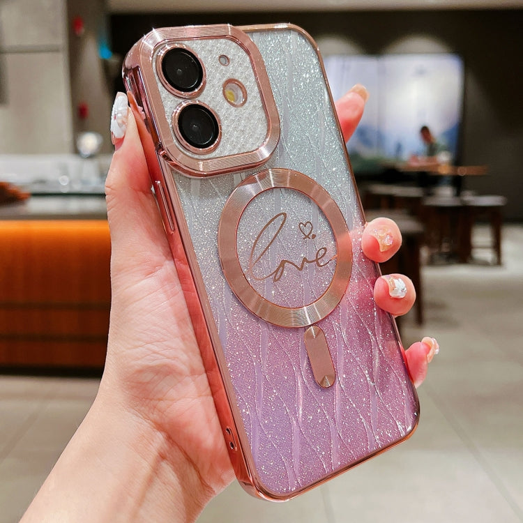 Estuche para Teléfono iPhone 11 Magsafe Dual-Love Leaves TPU con Brillo Degradado (Rosa)