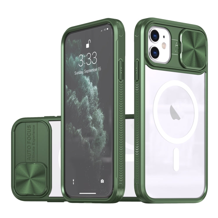Funda para iPhone 11 Cubierta Deslizante Acrílico Transparente PC TPU Magsafe (Verde Oliva)