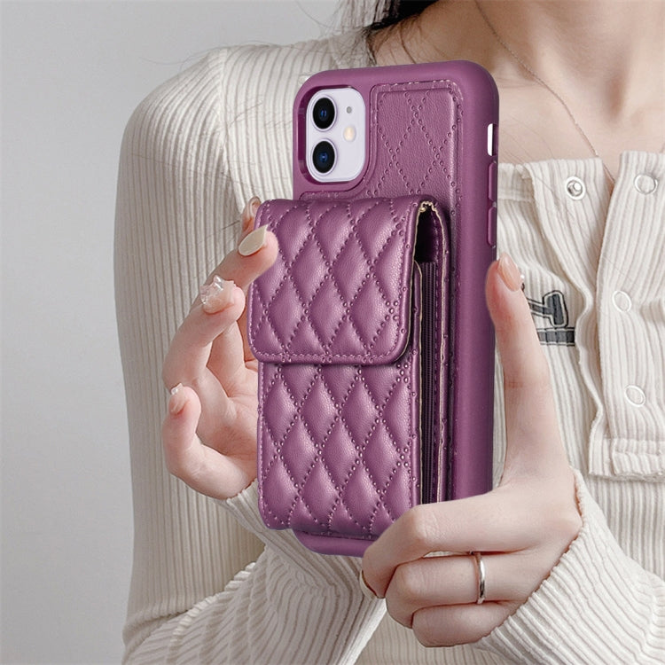 Funda para iPhone 11 Vertical Wallet Rhombic Leather Phone Case (Púrpura)