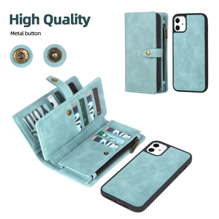 Funda para Teléfono iPhone 11 Cremallera Ranura para Tarjeta Hebilla Monedero Cuero (Azul)