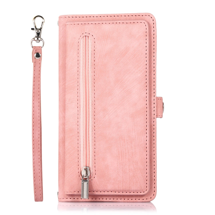 Funda para teléfono iPhone 11 Cremallera Ranura para Tarjeta Hebilla Monedero Cuero (Rosa)